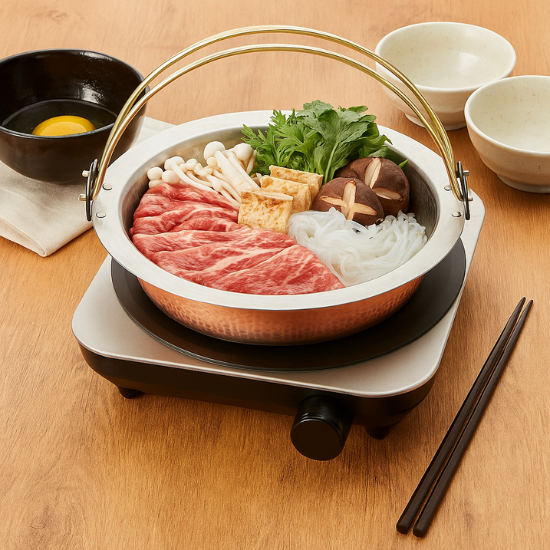 この卓上すき焼き鍋は、洗練されたデザインと高い機能性を兼ね備えた逸品です。