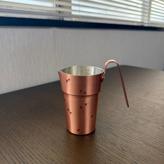 花々を美しく引き立てる純銅製花立。清潔に保たれる水で花の美しさを永く楽しめる。容量1400ml、サイズ115Φ×252H(mm)。